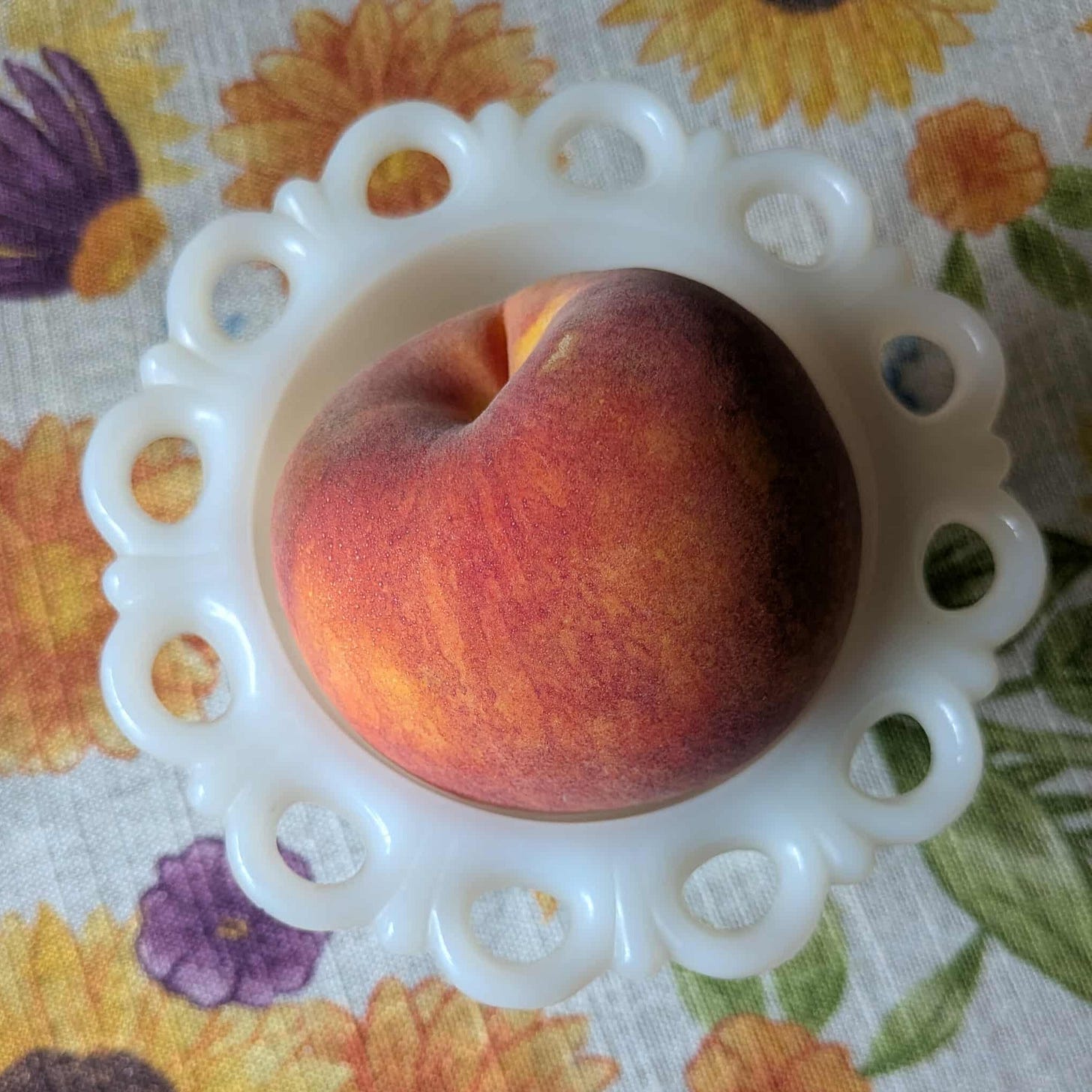 According to the Almighty Google, the Earth is “181,944 times larger than the diameter of an average peach.” Yet this poem explores how even the mundane act of eating this small golden orb can spangle the human imagination to the edge of creation.
